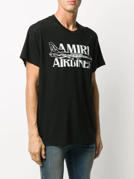 Vendor:AMIRIAirlines Logo Print Black T-shirt